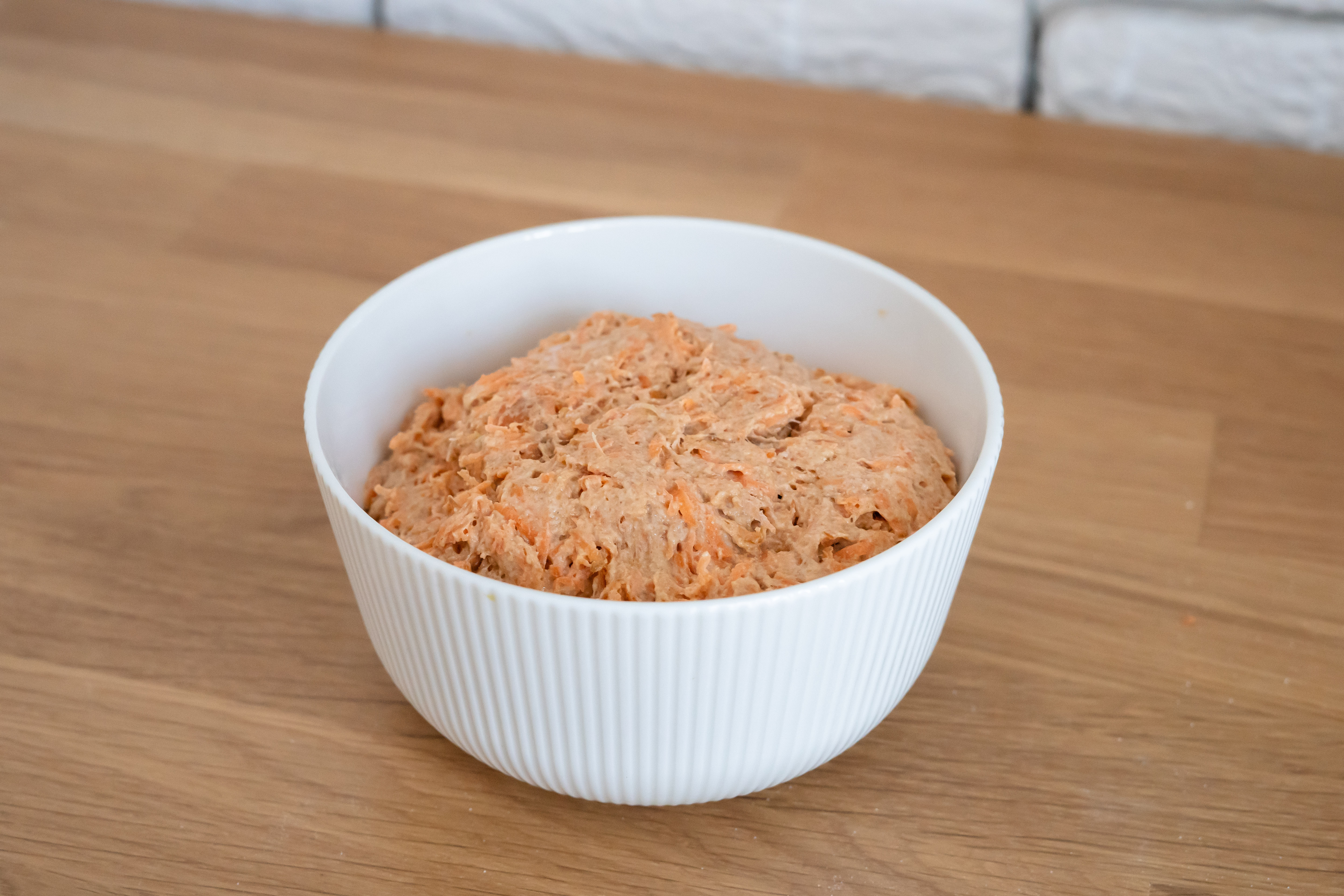 Smíchejte mouku, vejce a mrkev, přidejte vodu podle potřeby.
